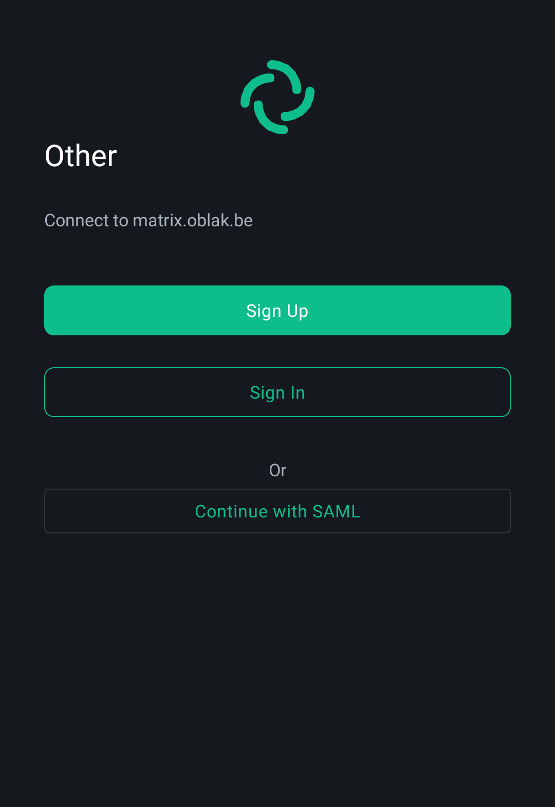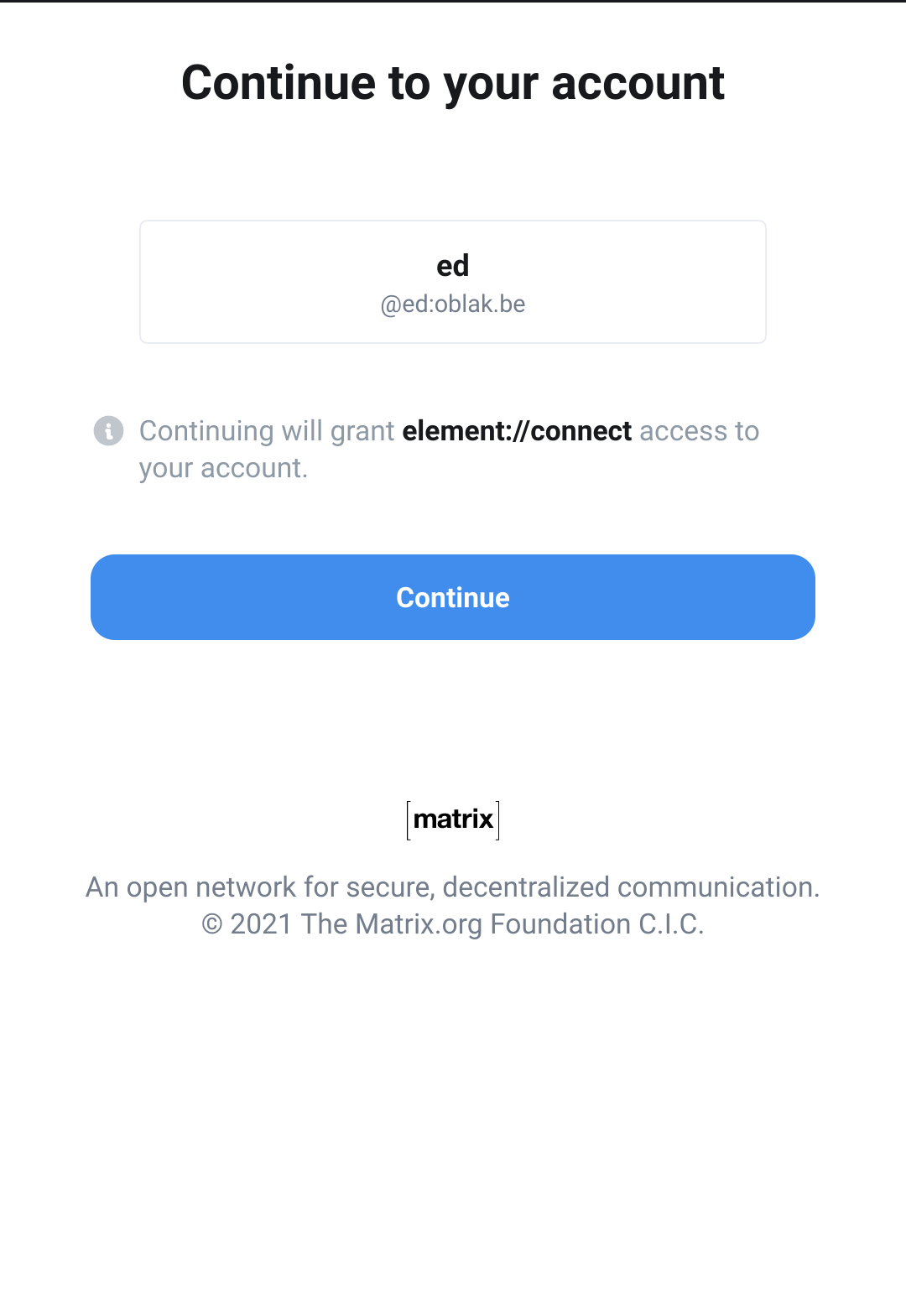 Fill in the server address, matrix.oblak.be, then tap continue.